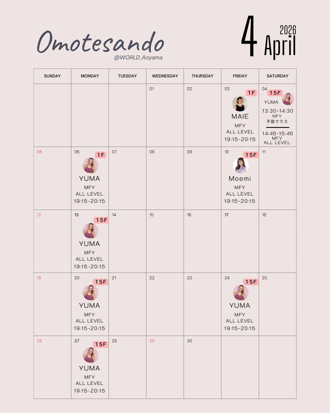 2026年のスケジュール公開しました。 ※内容や、会場階数は変更になる場合がございます。 |